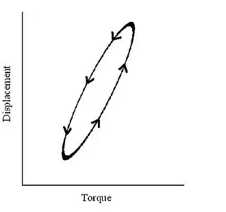 From the above relations, the components of the complex modulus are determined from a loop that is created by comparing the change in torque with the change in time which forms a loop when represented graphically. The limits of - d(t) loop and the area, A, bounded by the - d(t) loop, which represents the energy dissipation per cycle, are used in the calculations. The phase angle , storage modulus G', and loss modulus G″ then become: