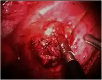 About 10–20% of traumatic hemothoraces require surgical management.[6] Larger hemothoraces, or those that continue to bleed following drainage, may require surgery. This surgery may take the form of a traditional open-chest procedure (a thoracotomy), but may be performed using video-associated thoracoscopic surgery (VATS). While there is no universally accepted cutoff for the volume of blood loss required before surgery is indicated, generally accepted indications include more than 1500 mL of blood drained from a thoracostomy, bleeding rate of over 500mL/hr in the first hour followed by over 200 mL, hemodynamic instability, or the need for repeat blood transfusions.[8][6] VATS is less invasive and cheaper than an open thoracotomy, and can reduce the length of hospital stay, but a thoracotomy may be preferred when hypovolemic shock is present,[3] in order to watch bleeding.[34] The procedure should ideally be performed within 72 hours of the injury as delay may increase the risk of complications.[19] In clotted hemothorax, VATS is the generally preferred procedure to remove the clot, and is indicated if the hemothorax fills 1/3 or more of a hemithorax. The ideal time to remove a clot using VATS is at 48–96 hours, but can be attempted up to nine days after the injury.[6]