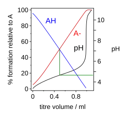 - ↑ For details and worked examples see, for instance, Skoog, Douglas A.; West, Donald M.; Holler, F. James; Crouch, Stanley R. (2004). Fundamentals of Analytical Chemistry (8th ed.). Belmont, Ca (USA): Brooks/Cole. pp. 251–263. ISBN 0-03035523-0.