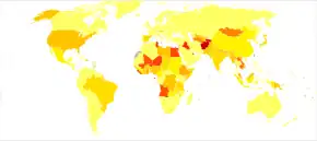 {{cite journal}}:|first1=has generic name (help)CS1 maint: numeric names: authors list (link) - ↑ Lozano, R (2012-12-15). "Global and regional mortality from 235 causes of death for 20 age groups in 1990 and 2010: a systematic analysis for the Global Burden of Disease Study 2010". Lancet. 380 (9859): 2095–128. doi:10.1016/S0140-6736(12)61728-0. hdl:10536/DRO/DU:30050819. PMID 23245604. Archived from the original on 2020-05-19. Retrieved 2020-07-28.