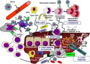 - ↑ Liang, TJ; Ghany, MG (May 16, 2013). "Current and future therapies for hepatitis C virus infection". The New England Journal of Medicine. 368 (20): 1907–17. doi:10.1056/NEJMra1213651. PMC 3893124. PMID 23675659.