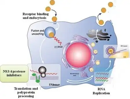 - ↑ Meier V, Ramadori G (April 2009). "Hepatitis C virus virology and new treatment targets". Expert Rev Anti Infect Ther. 7 (3): 329–50. doi:10.1586/eri.09.12. PMID 19344246. S2CID 38411966.
