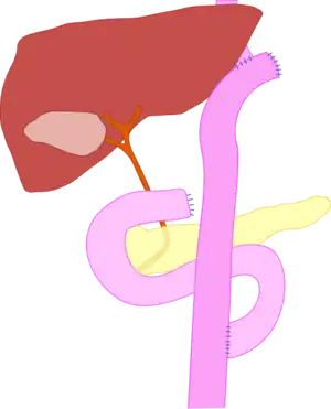 | Diagram demonstrating the end result of a total gastrectomy, the most common prophylactic treatment of HDGC. In the procedure the esophagus is directly connected to the small intestine. | |