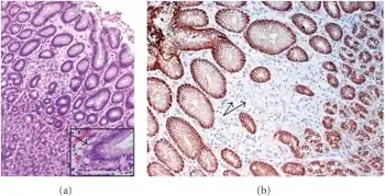 - ↑ 4.0 4.1 Shah, Ma; Salo-Mullen, E; Stadler, Z; Ruggeri, Jm; Mirander, M; Pristyazhnyuk, Y; Zhang, L (September 2012). "De novo CDH1 mutation in a family presenting with early-onset diffuse gastric cancer". Clinical Genetics. 82 (3): 283–287. doi:10.1111/j.1399-0004.2011.01744.x. PMID 21696387. S2CID 26197100.