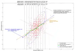 Heritability may be estimated by comparing parent and offspring traits (as in Fig. 2). The slope of the line (0.57) approximates the heritability of the trait when offspring values are regressed against the average trait in the parents. If only one parent's value is used then heritability is twice the slope. (This is the source of the term "regression," since the offspring values always tend to regress to the mean value for the population, i.e., the slope is always less than one). This regression effect also underlies the DeFries–Fulker method for analyzing twins selected for one member being affected.[19]