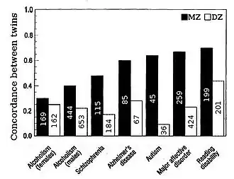 - ↑ DeFries JC, Fulker DW (September 1985). "Multiple regression analysis of twin data". Behavior Genetics. 15 (5): 467–73. doi:10.1007/BF01066239. PMID 4074272. S2CID 1172312.