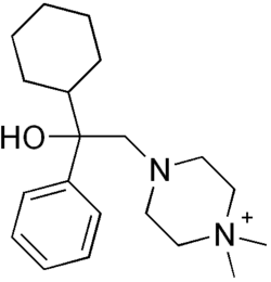 - ↑ Kasich AM, Fein HD (January 1958). "Hexocyclium methosulfate in active duodenal ulcer; evaluation of a new anticholinergic drug in conventional and long-acting forms, especially its effect on gastric pH as studied in 48-hour analysis". The American Journal of Digestive Diseases. 3 (1): 12–23. doi:10.1007/BF02231305. PMID 13487546.