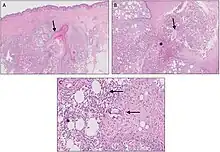 - ↑ Xu LY, Wright DR, Mahmoud BH, Ozog DM, Mehregan DA, Hamzavi IH (January 2011). "Histopathologic study of hidradenitis suppurativa following long-pulsed 1064-nm Nd:YAG laser treatment". Archives of Dermatology. 147 (1): 21–8. doi:10.1001/archdermatol.2010.245. PMID 20855672.