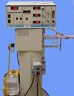 - ↑ D. P. Schuster; M. Klain; J. V. Snyder (October 1982). "Comparison of high-frequency jet ventilation to conventional ventilation during severe acute respiratory failure in humans". Critical Care Medicine. 10 (10): 625–630. doi:10.1097/00003246-198210000-00001. PMID 6749433.