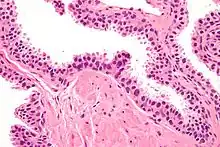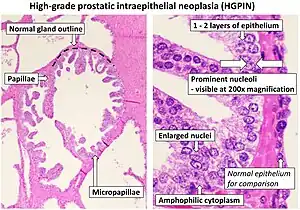 High-grade prostatic intraepithelial neoplasia (HGPIN) is an abnormality of prostatic glands and believed to precede the development of prostate adenocarcinoma (the most common form of prostate cancer).[1][2]