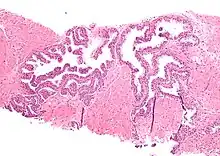 Micrograph showing high-grade prostatic intraepithelial neoplasia. H&E stain.