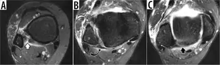 | MRI showing a syndesmotic injury in a high ankle sprain | |