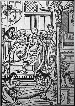 We encounter the first, as yet unclear indication of childbed fever in the second half of the 17th century at the Hôtel-Dieu in Paris. Phillipe Peu relates that mortality among the newly delivered was very great and greater in certain seasons than others. The year 1664 was particularly devastating.[1]