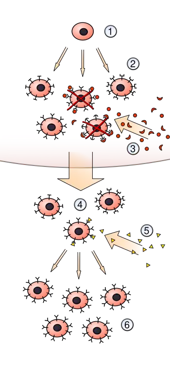 Burnet, independently of Medawar, came to the conclusion that the immune system must learn to tolerate any self cells, and hypothesized that this must occur during fetal development. For this, he jointly was awarded the Nobel Prize in 1960. Burnet's work continued and in 1957 along with Niels Jerne published a paper that modified and revolutionized antibody theory. "Burnet speculated that one cell makes one particular shape of antibody and that all our antibody-making immune cells together make an unimaginably vast repertoire of 10 billion antibodies, each having a slightly different shape".[6] Thus, whenever a non-self molecule appears in the human body, one of these antibodies will have an accurate enough shape to bind to that molecule. This idea is known as clonal selection theory. At the time, many leading scientists including Linus Pauling and James Watson completely rejected the idea, but repeated experimentation intended to disprove the theory actually served to build up a large body of evidence supporting Burnet and Jerne's theory.[1]