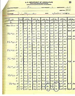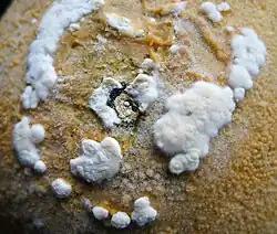 Until May 1943, almost all penicillin was produced using the shallow-pan method pioneered by the Oxford team,[118] but NRRL mycologist Kenneth Bryan Raper experimented with deep submergence production, in which penicillin mould was grown in a vat instead of a shallow dish. The initial results were disappointing; penicillin cultured in this manner yielded only three to four Oxford units per cubic centimetre, compared to twenty for surface cultures.[119] He got the help of U.S. Army's Air Transport Command to search for similar mould in different parts of the world. Good moulds were found in samples from Chongqing, Bombay and Cape Town. The best sample, however, was from a cantaloupe sold in a Peoria fruit market in 1943. The mould was identified as Penicillium chrysogenum and designated as NRRL 1951 or cantaloupe strain.[110][120] The spores may have escaped from the NRRL.[121][a][b]