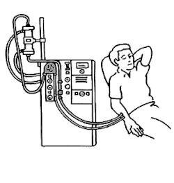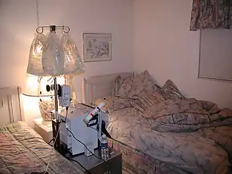 ![]() NxStage System One cycler, being used for hemodialysis with bags of dialysate | |