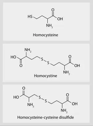 - ↑ Kim J, Kim H, Roh H, Kwon Y (2018). "Causes of hyperhomocysteinemia and its pathological significance". Arch Pharm Res. 41 (4): 372–383. doi:10.1007/s12272-018-1016-4. PMID 29552692. S2CID 3986295.