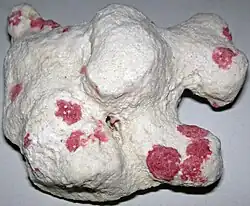 | Homotrema rubrum. Encrusting foraminifera on an eroded coral clast from the Holocene of the Bahamas. | |