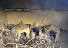 Current improved interventions however, include smoke hoods which operate in much the same manner as flues, to extract smoke, but are found to reduce levels of IAP more effectively than homes that relied solely on windows for ventilation.[11] Some features of newly improved stoves include a chimney, enclosing the fire to retain heat, designing a pot holder to maximize heat transfer, dampers to control air flow, a ceramic insert to reduce heat loss, and multi-pot systems to allow for cooking multiple dishes.