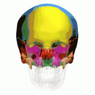 ![]() The eight cranial bones. (Facial bones are shown in transparent.)