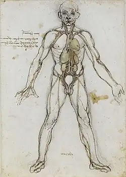 In Ancient Greece, the Hippocratic Corpus described the anatomy of the skeleton and muscles.[64] The 2nd century physician Galen of Pergamum compiled classical knowledge of anatomy into a text that was used throughout the Middle Ages.[65] In the Renaissance, Andreas Vesalius (1514–1564) pioneered the modern study of human anatomy by dissection, writing the influential book De humani corporis fabrica.[66][67] Anatomy advanced further with the invention of the microscope and the study of the cellular structure of tissues and organs.[68] Modern anatomy uses techniques such as magnetic resonance imaging, computed tomography, fluoroscopy and ultrasound imaging to study the body in unprecedented detail.[69]
