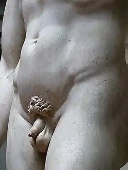 The males of ancient Greece believed that small penises were ideal.[49] Scholars believe that most ancient Greeks probably had the same size penises as other Europeans,[49] but Greek artistic portrayals of handsome youths show them with inordinately small, uncircumcised penises with disproportionately large foreskins,[49] indicating that these were seen as ideal.[49] Large penises in Greek art are reserved for comically grotesque figures,[49][50] such as satyrs, a class of hideous, horse-like woodland spirits, who are shown in Greek art with absurdly massive penises.[49]