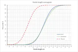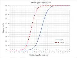 - 1 2 3 4 5 6 7 8 9 Veale, David; Miles, Sarah; Bramley, Sally; Muir, Gordon; Hodsoll, John (June 2015). "Am I normal? A systematic review and construction of nomograms for flaccid and erect penis length and circumference in up to 15 521 men: Nomograms for flaccid/erect penis length and circumference". BJU International. 115 (6): 978–986. doi:10.1111/bju.13010. PMID 25487360.