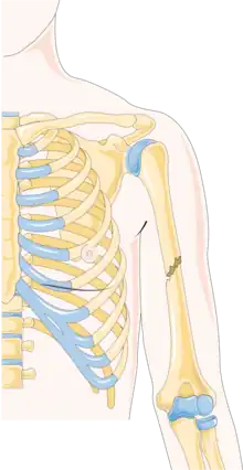 - ↑ 2.00 2.01 2.02 2.03 2.04 2.05 2.06 2.07 2.08 2.09 2.10 2.11 2.12 2.13 2.14 2.15 2.16 2.17 Attum, B (6 June 2019). "Humerus Fractures Overview". StatPearls. PMID 29489190.
