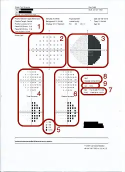 ↑ Cubbidge, R (2012). "Essentials of visual field assessment". The Optician. 243 (6356): 14–16. ProQuest1027770159.