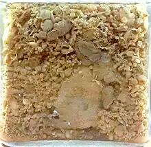 The etymology is derived from hydatisia (Greek "a drop of water"), referring to the watery contents of the cysts, and mole (from Latin mola = millstone/false conception).[21] The term, however, comes from the similar appearance of the cyst to a hydatid cyst in an Echinococcosis.[22]