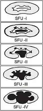 The Society of Fetal Ultrasound (SFU) has developed a grading system for hydronephrosis, initially intended for use in neonatal and infant hydronephrosis, but it is now used for grading hydronephrosis in adults as well:[14]