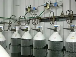 Originally therapeutic recompression was done using air as the only breathing gas, and this is reflected in several of the tables detailed below. However, work by Yarbrough and Behnke[7] showed that use of oxygen as a treatment gas is usually beneficial and this has become the standard of care for treatment of DCS.[3] Pure oxygen can be used at pressures up to 60 fsw (18 msw)[6] with acceptable risk of CNS oxygen toxicity, which generally has acceptable consequences in the chamber environment when an inside tender is at hand. At greater pressures, treatment gas mixtures using Nitrogen or Helium as a diluent to limit partial pressure of oxygen to 3 ata (3 bar) or less are preferred to air as they are more effective both at elimination of inert gases and oxygenating injured tissues in comparison with air. Nitrox and Heliox mixtures are recommended by the US Navy for treatment gases at pressures exceeding 60 fsw (18 msw), and Heliox is preferred at pressures exceeding 165 fsw (50 msw) to reduce nitrogen narcosis.[6] High oxygen fraction gas mixtures may also be substituted for pure oxygen at pressures less than 60 fsw if the patient does not tolerate 100% oxygen.[6]