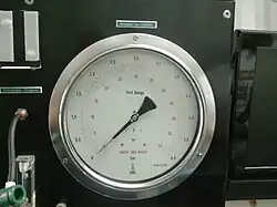 The commonly used units of pressure for hyperbaric treatment are metres of sea water (msw) and feet of sea water (fsw) which indicate the pressure of treatment in terms of the height of water column that would be supported in a manometer. These units are also used for measuring the depth of a surface supplied diver using a pneumofathometer and directly relate the pressure to an equivalent depth. The pressure gauges used on diving chambers are often calibrated in both of these units. Elapsed time of treatment is usually recorded in minutes, or hours and minutes, and may be measured from the start of pressurisation, or from the time when treatment pressure is reached.