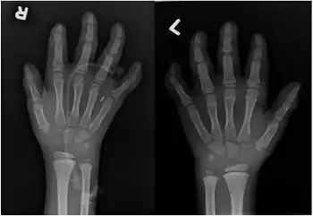 - ↑ Horn D, Schottmann G, Meinecke P (2010). "Hyperphosphatasia with mental retardation, brachytelephalangy, and a distinct facial gestalt: Delineation of a recognizable syndrome". European Journal of Medical Genetics. 53 (2): 85–88. doi:10.1016/j.ejmg.2010.01.002. PMID 20080219.