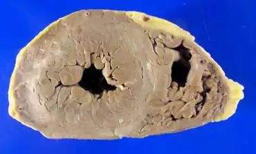 | Cross-section of the heart at the ventricular level; mild left ventricular hypertrophy, with no cavitary dilation | |
