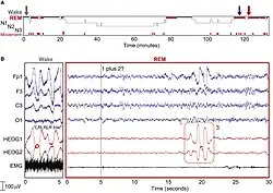 - ↑ Silber MH, Ancoli-Israel S, Bonnet MH, Chokroverty S, Grigg-Damberger MM, et al. (2007). "The visual scoring of sleep in adults". Journal of Clinical Sleep Medicine. 3 (2): 121–31. doi:10.5664/jcsm.26814. PMID 17557422.