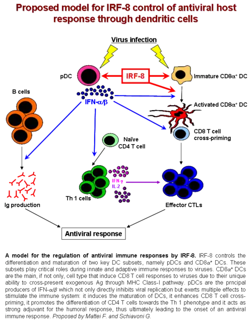 - Schiavoni G, Mattei F, Sestili P, Borghi P, Venditti M, Morse HC, Belardelli F, Gabriele L (2002). "ICSBP is essential for the development of mouse type I interferon-producing cells and for the generation and activation of CD8alpha(+) dendritic cells". J. Exp. Med. 196 (11): 1415–1425. doi:10.1084/jem.20021263. PMC 2194263. PMID 12461077.