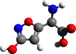 Ibotenic acid, or ibotenate, also known as premuscimol or as (S)-2-amino-2-(3-hydroxyisoxazol-5-yl)acetic acid, is a naturally occurring α-amino acid found in certain Amanita mushrooms such as Amanita muscaria.[1][2][3][4] It acts primarily as a potent glutamate receptor agonist and produces neurological effects.[1][2][3][4] The compound is used as a brain-lesioning agent in scientific research.[5]