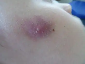 - ↑ Boralevi, F.; Léauté-Labrèze, C.; Lepreux, S.; Barbarot, S.; Mazereeuw-Hautier, J.; Eschard, C.; Taïeb, A. (April 2007). "Idiopathic facial aseptic granuloma: a multicentre prospective study of 30 cases". British Journal of Dermatology. 156 (4): 705–708. doi:10.1111/j.1365-2133.2006.07741.x. PMID 17493068.