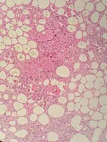 | Sclerosing mesenteritis - note the hemosiderin, chronic inflammation | |