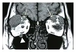 - ↑ J. Ben Soussan; R. Deschamps; J. C. Sadik; J. Savatovsky; L. Deschamps; M. Puttermann; M. Zmuda; F. Heran; O. Galatoire; H. Picard; A. Lecler (19 July 2016). "Infraorbital nerve involvement on magnetic resonance imaging in European patients with IgG4-related ophthalmic disease: a specific sign". European Radiology. 27 (4): 1335–1343. doi:10.1007/s00330-016-4481-5. PMID 27436015. S2CID 645961.