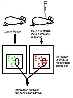 Microarray analysis of various serums can be used as a means to identify changes in gene expression before, after, and during a given immune response.