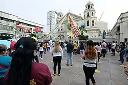 Devotees of the Black Nazarene observe social distancing as they attend Mass in front of Quiapo Church in Manila, Philippines on July 1, 2022.