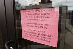 214. "Kentucky church held service against governor's warning. Visitor now has coronavirus". 20 March 2020. Archived from the original on 25 March 2020. Retrieved 24 March 2020.