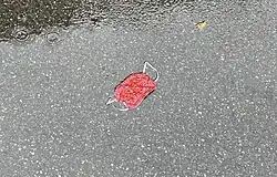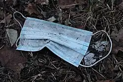 Numerous reports have documented[67][68] that the increased usage of masks led to, "...an extra 8 million tons of plastic waste during the pandemic...",[69] partly due to discarded facial masks that were worn in an effort to stem the spread of COVID-19 from person to person via airborne transmission.[70]