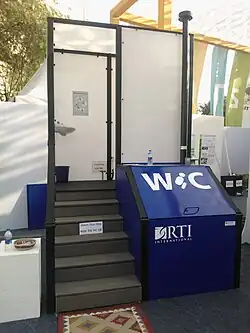 In 2011, the Bill & Melinda Gates Foundation launched the "Reinvent the Toilet Challenge" to promote safer, more effective ways to treat human excreta. Several research teams have received funding to work on developing toilets based on solid waste combustion.[4] For example, a toilet under development by RTI International is based on electrochemical disinfection and solid waste combustion.[5] This technology converts feces into burnable pieces and then uses thermoelectric devices to convert the thermal energy into electrical energy.