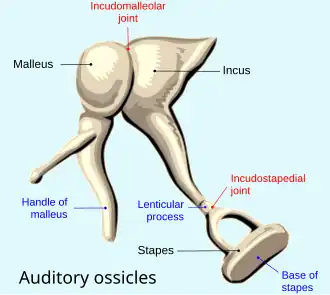 - ↑ Mason, Matthew J. (July 2013). "Of mice, moles and guinea pigs: Functional morphology of the middle ear in living mammals". Hearing Research. 301: 4–18. doi:10.1016/j.heares.2012.10.004.