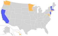 In 2018, as a response to the cancellation of the individual mandate penalty on the federal level, a number of states and the District of Columbia considered legislation to create state or local requirements. Massachusetts had never stopped its penalty for not carrying coverage, and maintained it post-ACA, in addition to the federal penalty associated with the ACA. After the 2018 dropping of the federal penalty, the state penalty continues to exist in Massachusetts.[18] New Jersey and the District of Columbia passed legislation to penalize individuals for not having health insurance starting from 2019. California, Rhode Island, and Vermont also passed similar legislation that would apply to years 2020 and onward. Other states that considered similar measures include Connecticut, Hawaii, Maryland, Minnesota, and Washington.[19][20]