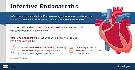 32. 32.0 32.1 Weisse AB, Heller DR, Schimenti RJ, Montgomery RL, Kapila R (March 1993). "The febrile parenteral drug user: a prospective study in 121 patients". The American Journal of Medicine. 94 (3): 274–80. doi:10.1016/0002-9343(93)90059-X. PMID 8452151.