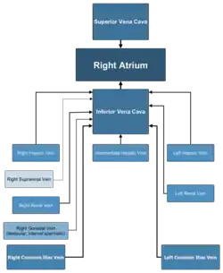 | Source | Common iliac vein lumbar veins testicular vein renal vein suprarenal vein hepatic vein |